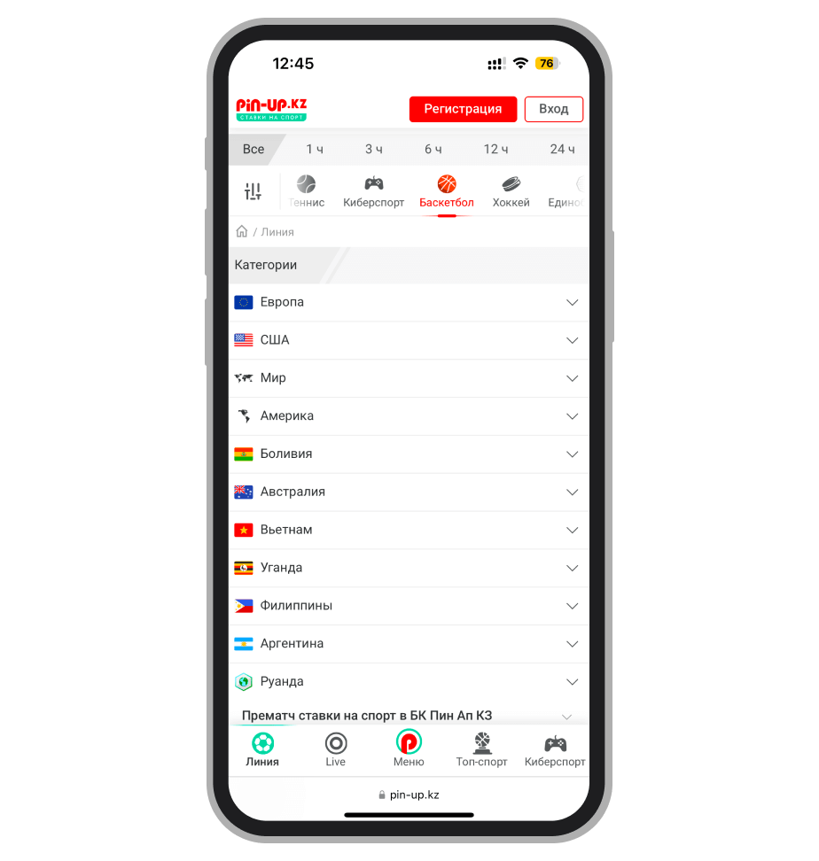 Pin-Up предлагает линию более чем на 30 видов спорта, включая киберспорт. Особенно выделяется линия НБА — свыше 200 вариантов на матч: форы, тоталы, игроки и статистика.