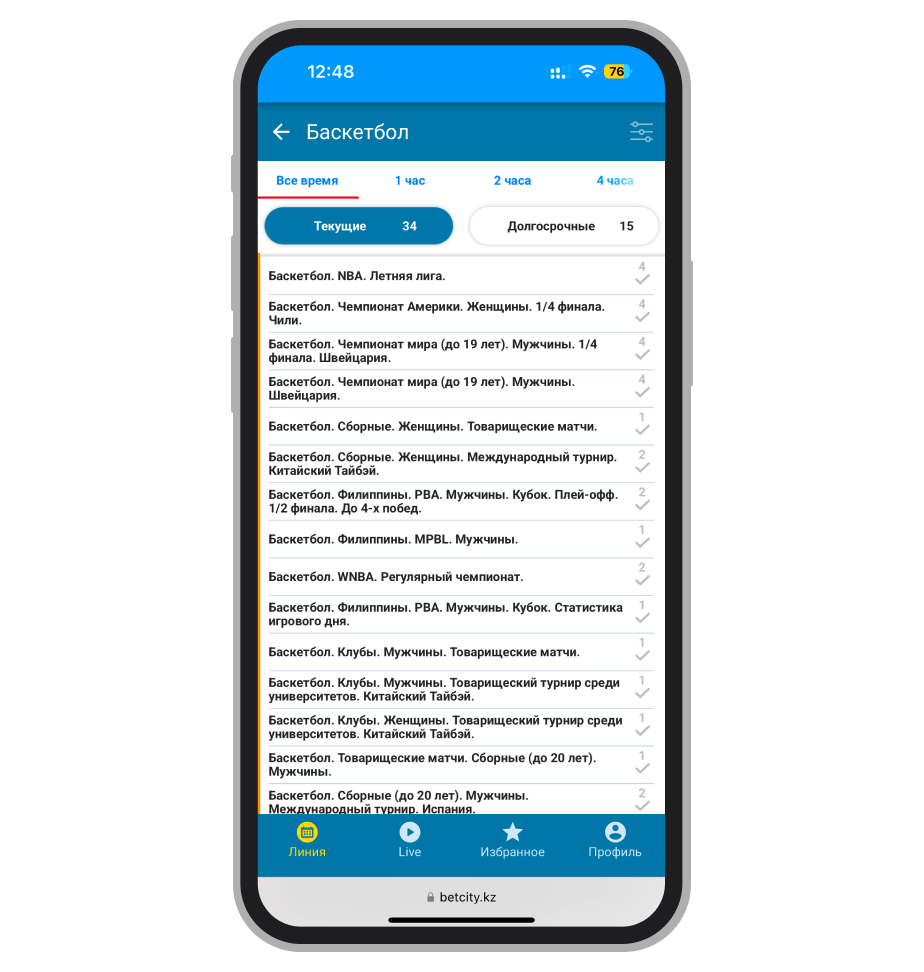 Букмекерская контора 1xBet.kz предлагает одну из самых насыщенных линий на рынке. Это продуманная платформа с богатым выбором видов спорта и матчей, включая ведущие баскетбольные лиги, НБА и Евролигу, а также менее известные чемпионаты по всему миру. Также доступны ставки на будущие туры и долгосрочные исходы.