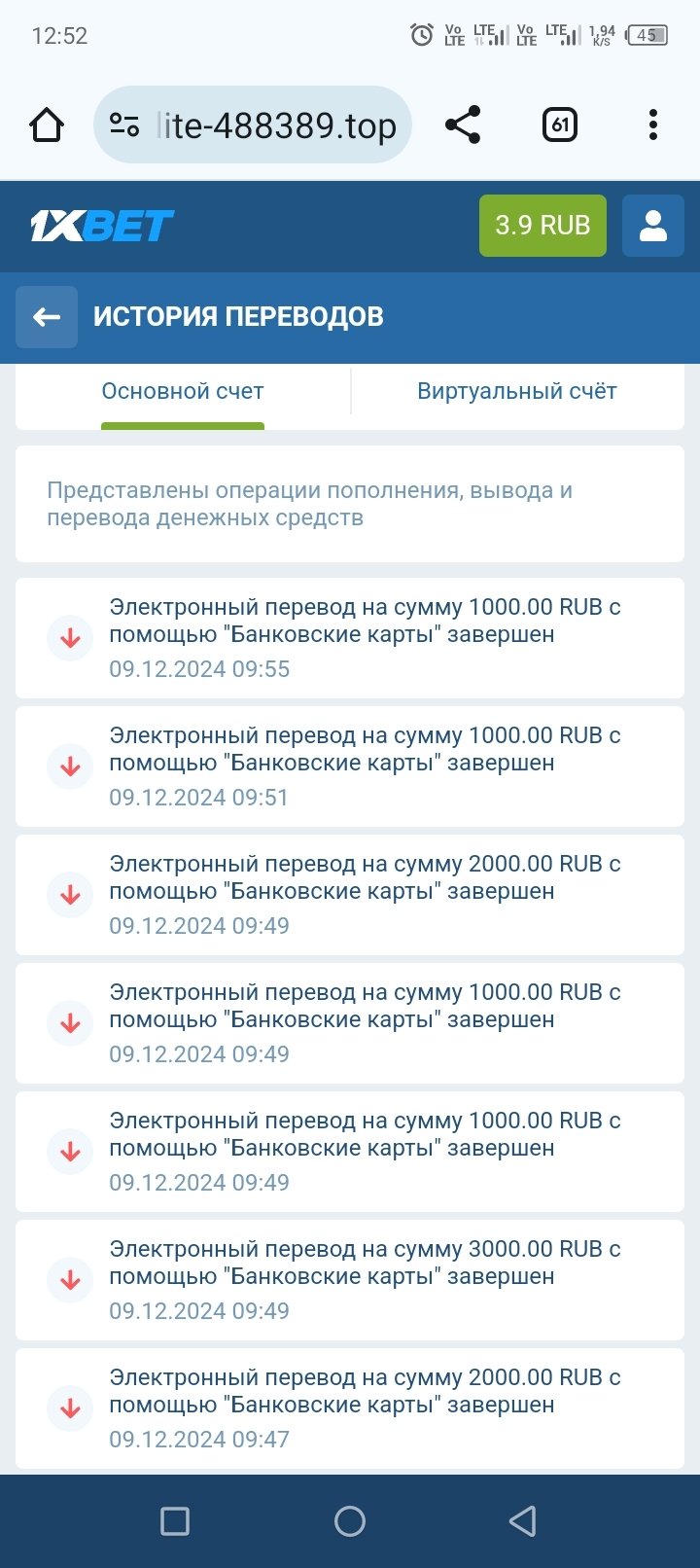 От 9/12-2024 указано что были произведены выводы на мою карту в сумме 15000р(11 транзакции). Деньги до карты не дошли (Номер 802013629)