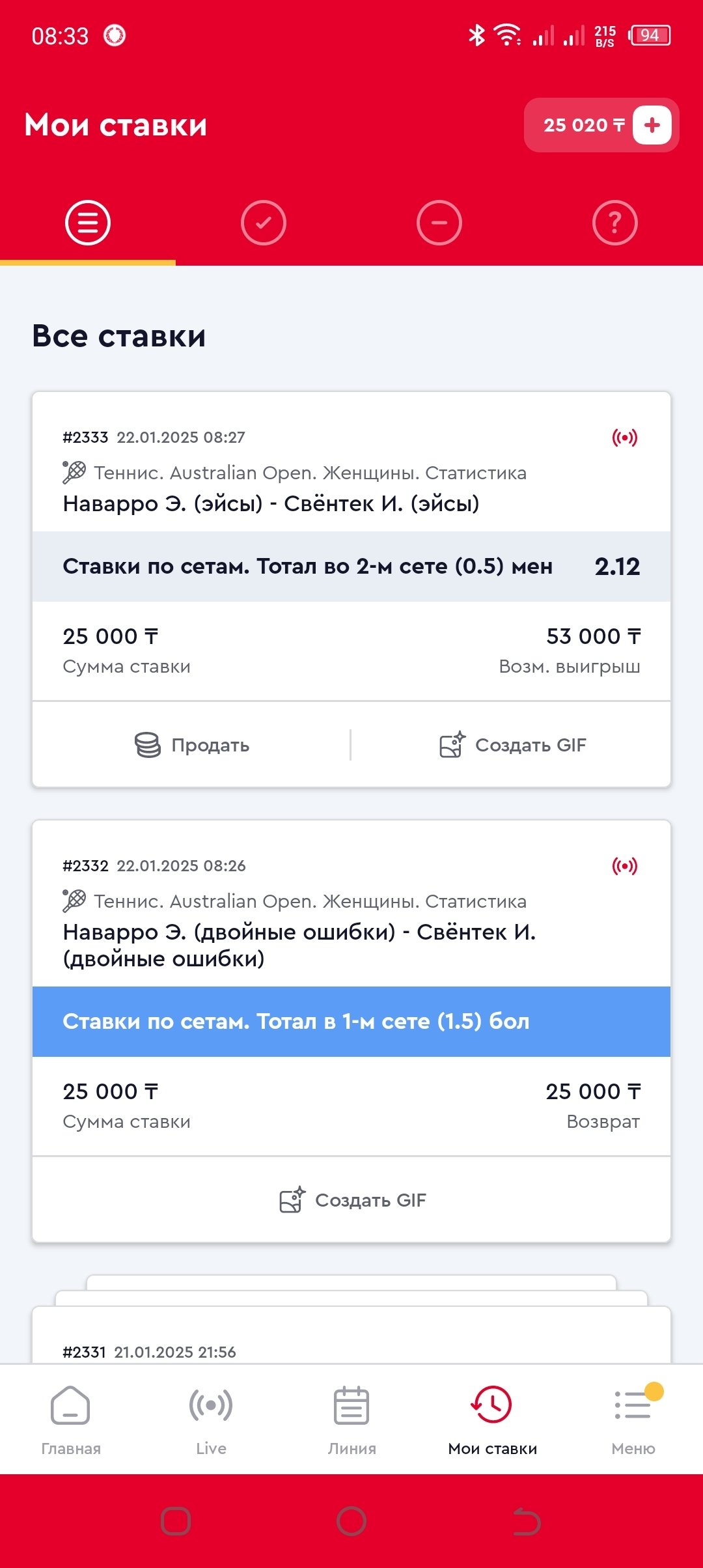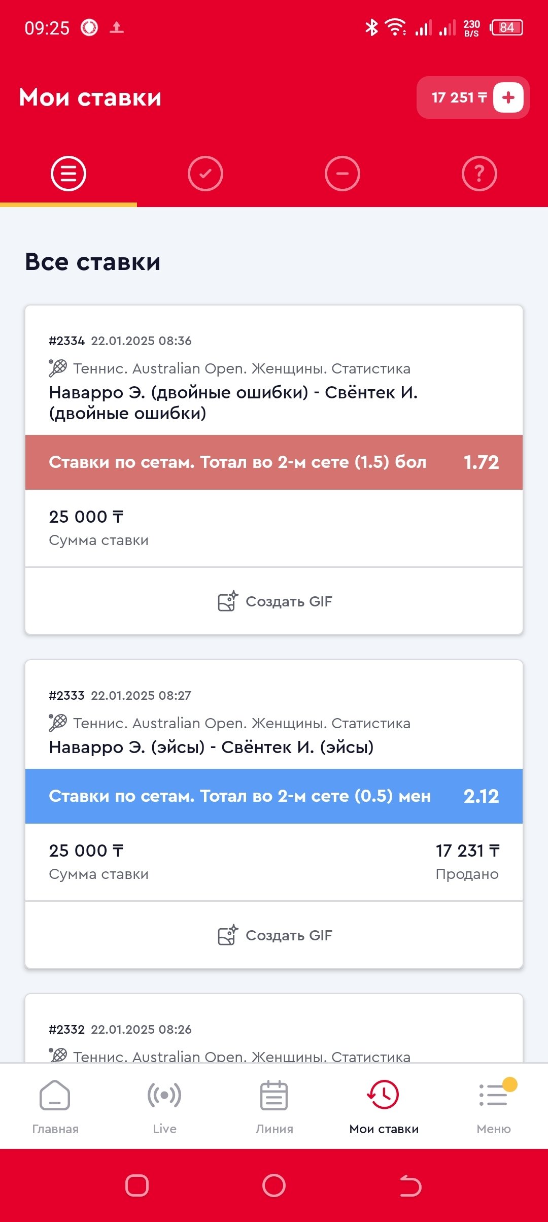 Добрый день! Вчера в лайве поставил ставку на теннис на фору Касаткиной по двойным ошибкам с форой -2.5 во втором сете при счете 0-2 с коэфф. затем касаткина совершила дв.ошибку через минут 20 закочился сет со счетом 1-5 по дв. Ошибкам. Когда расчитали ставку почему то они мне расчитали ее совсем по другому коэффу. Сами лично спустя 20 мин поменяли коэфф. В наглую. Прошу вас разобраться просто самопроизвол какой то. Я специально успел сделать скрин посмотрите его. Такое происходит не раз в этот раз просто вывели из себя. Поддержка служба наглая. Обнаглели. Когда провел ставку спустя минут 10 только касаткина сделала двойную ошибку. Можете время даже посмотреть на скриншотах есть. Логин 8391944