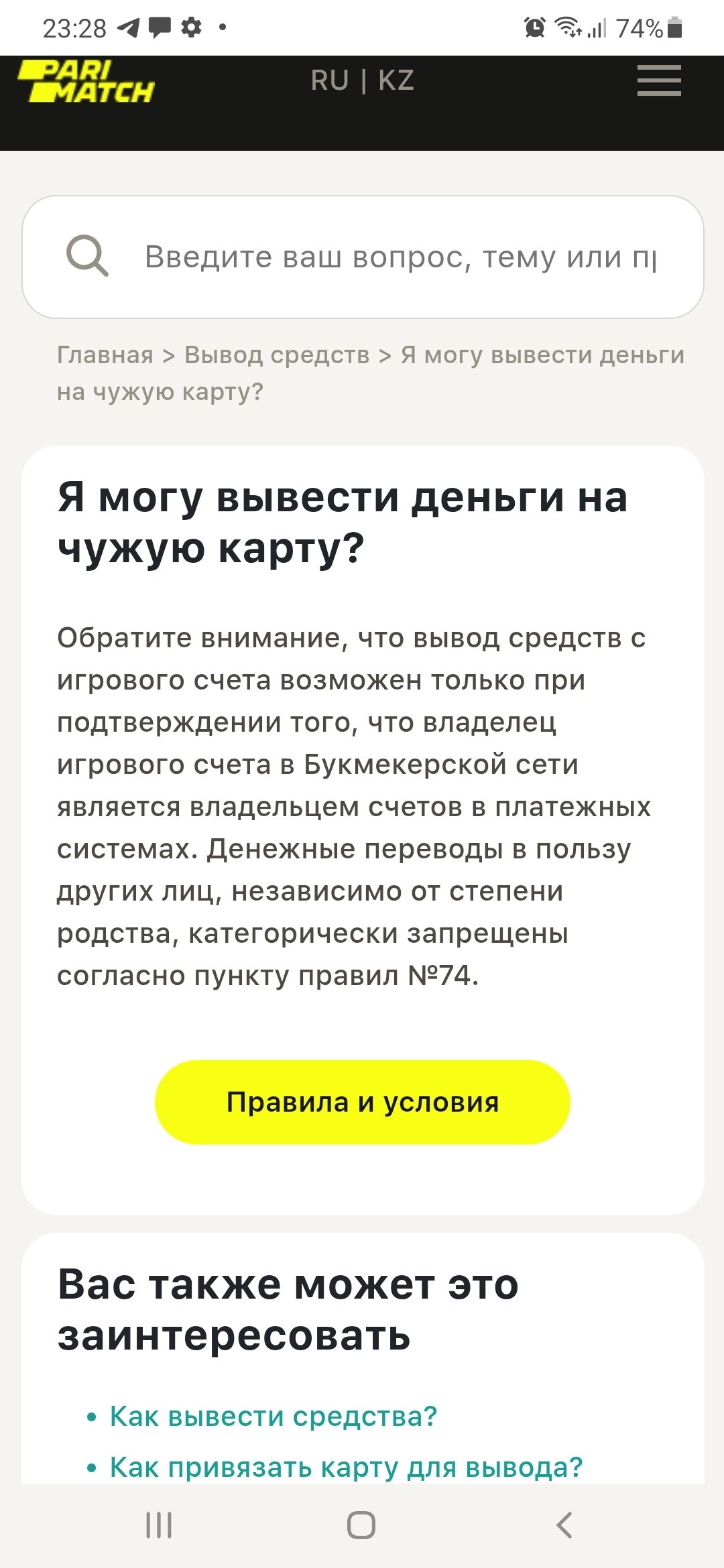 Доброго времени суток!Согласно правилам Закона об игорном бизнесе и азартных играх ГК РК, букмекерская контора не должна была принимать ставку от гражданина имеющий запрет на участие в пари, я взял у третьего лица ( знакомого ) логин в париматч после чего пополнил его не единожды для участия в ставках на спорт, при этом все транзакции происходили через мою карту , которую я успешно сохранил на сайте бк, данные(реквизиты) карты отражаются у букмейкера, согласно пункту правил 74 правила бк париматч, а так же ГК РК , прошу вернуть свои средства за вычетом всех снятий на свою карту прошу вернуть все мои средства, в ином случае буду обращаться в суд! Эксперту есть что добавить ?
