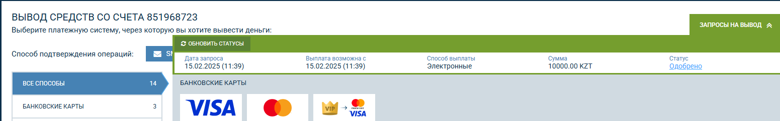 Здравствуйте. Игровой счёт 851968723. в сделал вывод через Халык банкомат. На сумму 10000тенге. Операция была одобрена. Но смс код так и не пришёл на телефон. Написал консультантам сказали в течении 27-28 часов, если не придёт смс код. То автоматически деньги перечислятся на ваш игровой счёт. Но и этого не случилось. Пишу им говорят поступят в ближайшее время. Можно как то решить этот вопрос?