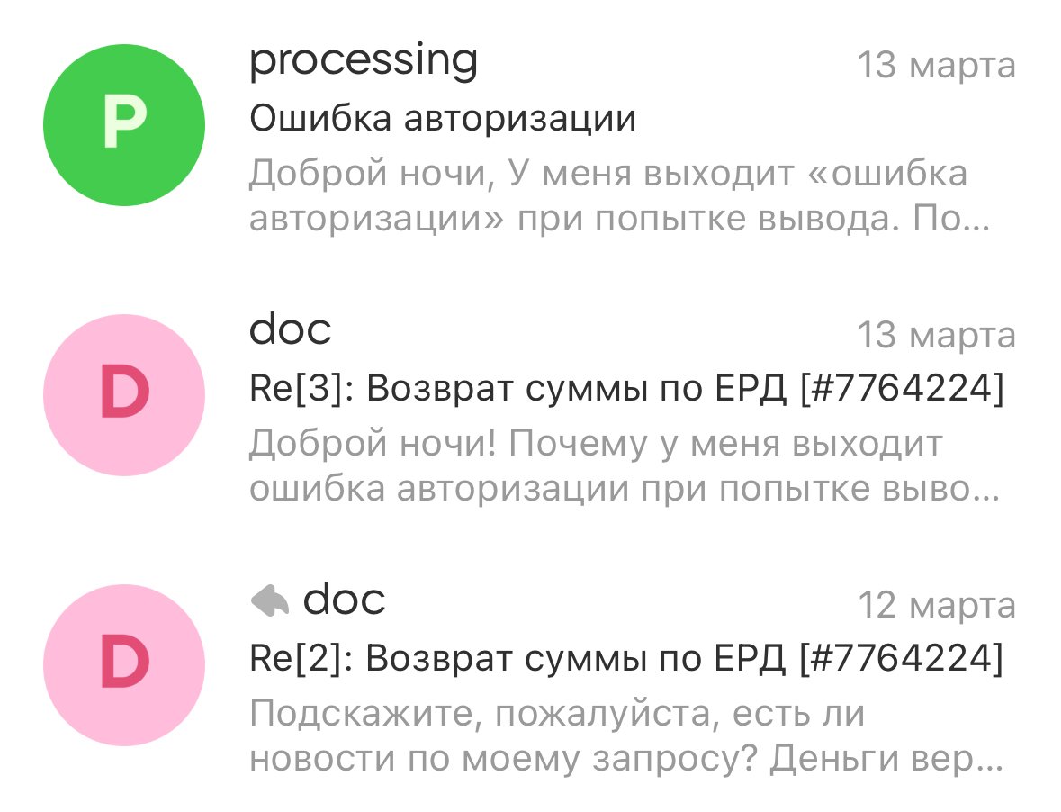 Здравствуйте, возврат депозитов поступил на игровой счет, но при выводе выходит «ошибка авторизации». Поддержка (писала три раза в чат) и почта doc не отвечает