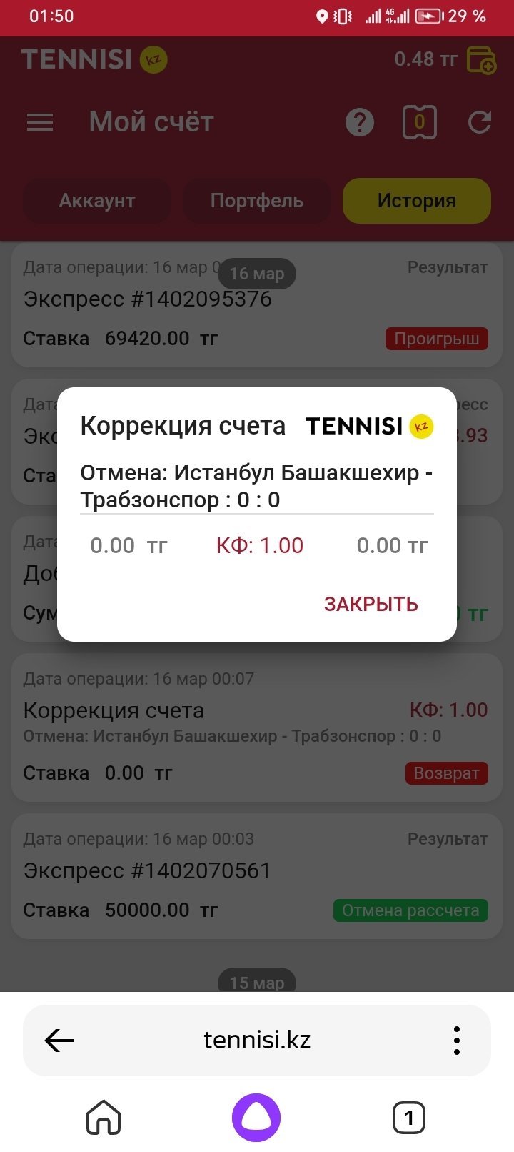 Здравствуйте я поставил ставку в лайфе экспресс из 2х событий, на одно из событий в лайфе дали отмену расчёта и в историй ставки это показали, так как я думал что событие сделали отмену, то не стал делать страховку, то есть ставку наоборот,В бк сказали что это был тех сбои в программе у них, событие которое они отменими сыграло проигрыш, В тех поддержку в бк писал они утрерждают что ставка рассчитана корректно, но из за их ошибке в тех сбое они ввели меня в заблуждение показав в историй ставки отмену расчёта,