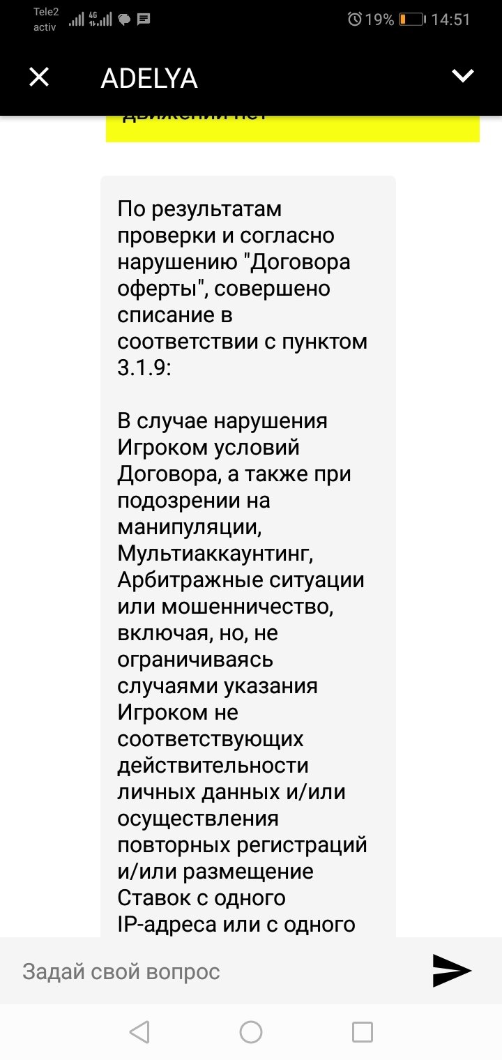 Просто так все деньги забрали, даже сумму ставки и пополнения забрали, это ведь не порядок, конкретной информации у них нет, просто так решили