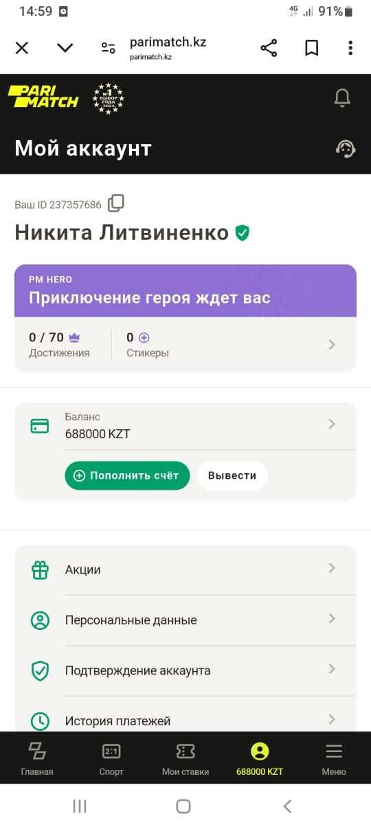 Здравствуйте! помогите разобраться поставил ставку в размере 400 000 ставка сыграла на сумму 688000 после этого поставил самоограничение чтоб больше не играть хотел только вывести деньги меня заблокировали я начал разговаривать со службой поддержки чтоб вывести средства они мне на это ответили что в течение 3,5 часа можете зайти и вывести средства после этого я зашёл на логин, на логине было 200 000 они мне сделали возвратом мою ставку и пишут якобы пункт 3,19 подозрение на не чистую игру но моя ставка была поставлена до самоограничения и рассчитана после этого я только поставил самоограничение и не хотят отдавать теперь мой выигрыш ссылаются на этот пункт с моей стороны мошенничества не было фото все иметься