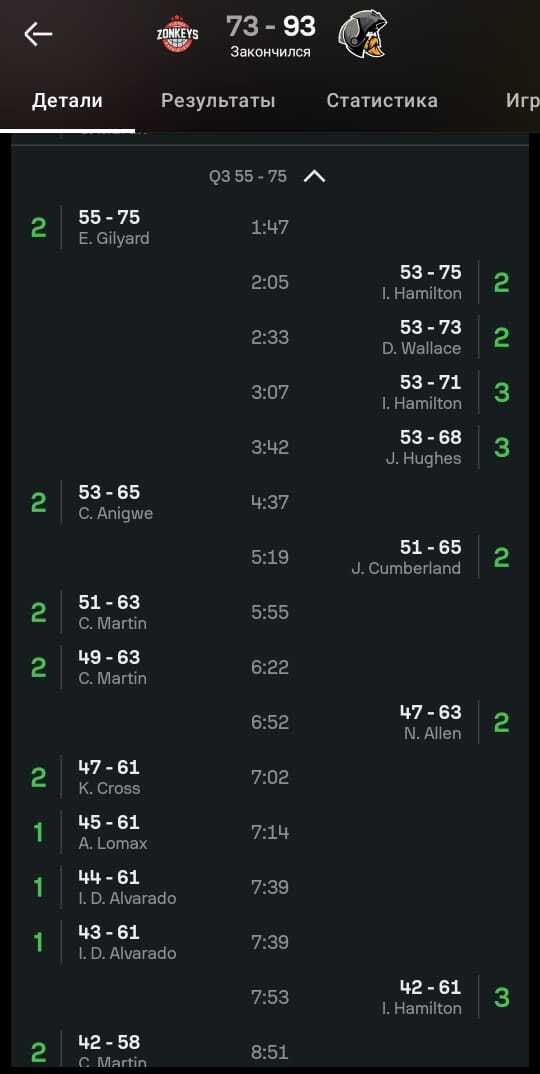 жаль я не сделал скриншот но я смотрел трансляцию и они последние очки не забили на 1:47, после этого они забили 3 очковый когда время закончилось и отменили, был реплей и там не хватило времени