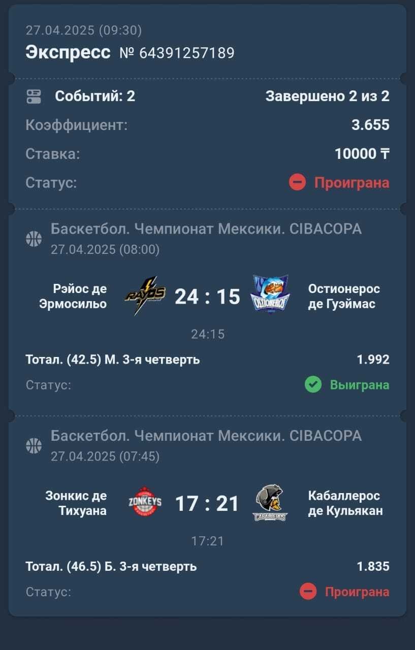 в 3 четверти матча Зонкис де Тихуана - Кабаллерос де Кульякан произошла ошибка с тоталами и он был некоректный, время четверти было больше на 87 секунд и тотал давался на это же время, также можно было поставить ставку когда четверть уже закончилась. Давали тотал на общий матч 181.5б но когда они закрыли ставки и исправили на корректное время тотал сразу упал на 167.5б