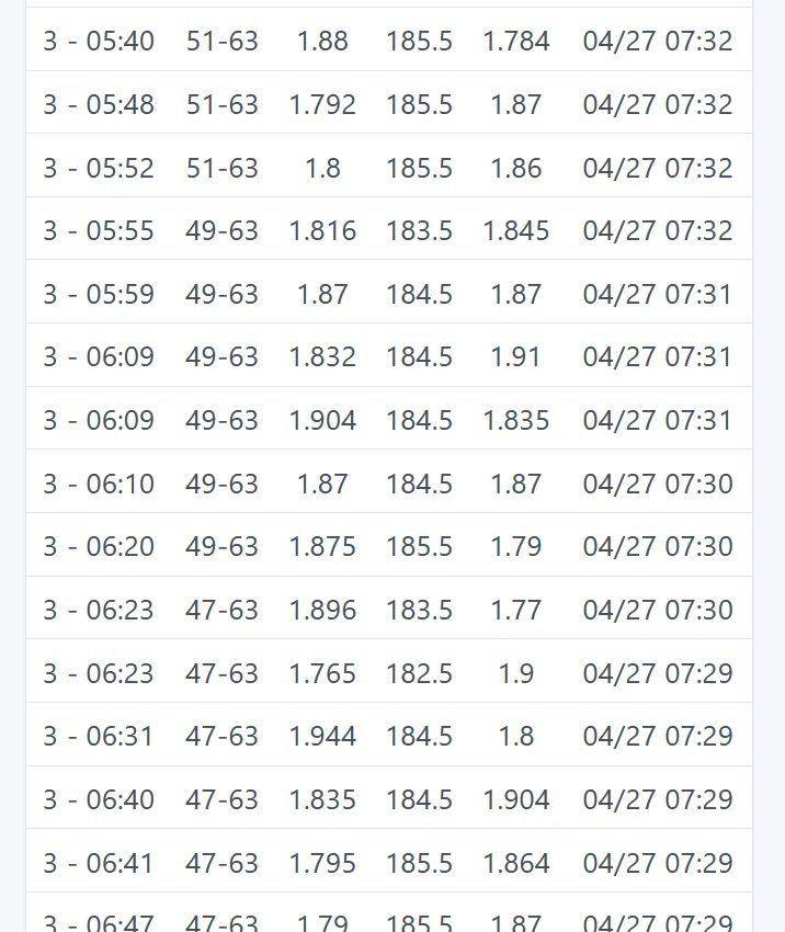 Ну, на сканерах тоже есть скачок на минуту с небольшим в конце четверти. Но это было в 9:44, а у вас ставка сделана в 09:30, то есть задолго до этого. Ну и в официальном протоколе на сайте мексиканской лиги все данные совпадают. Возможно, в концовке четверти сигнал пропал или что-то такое.
