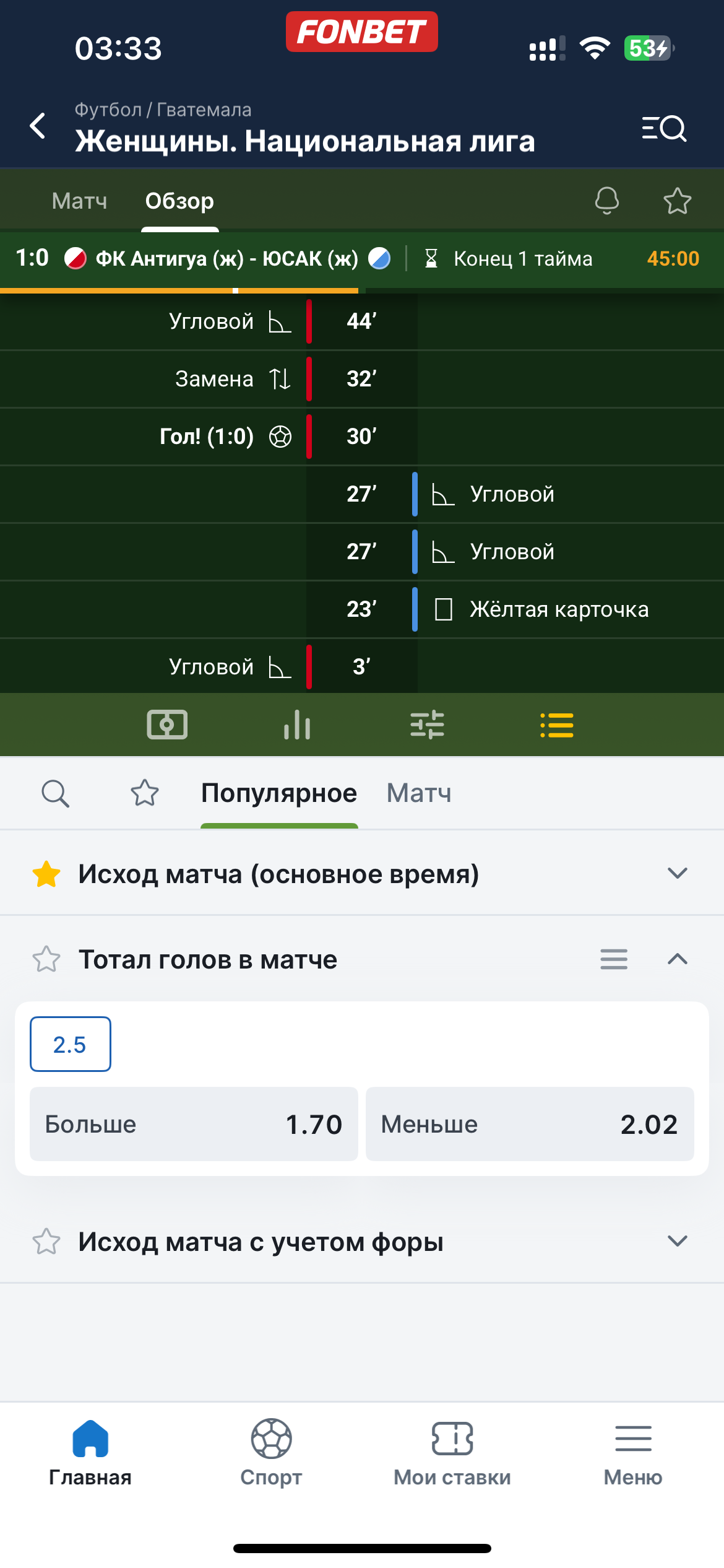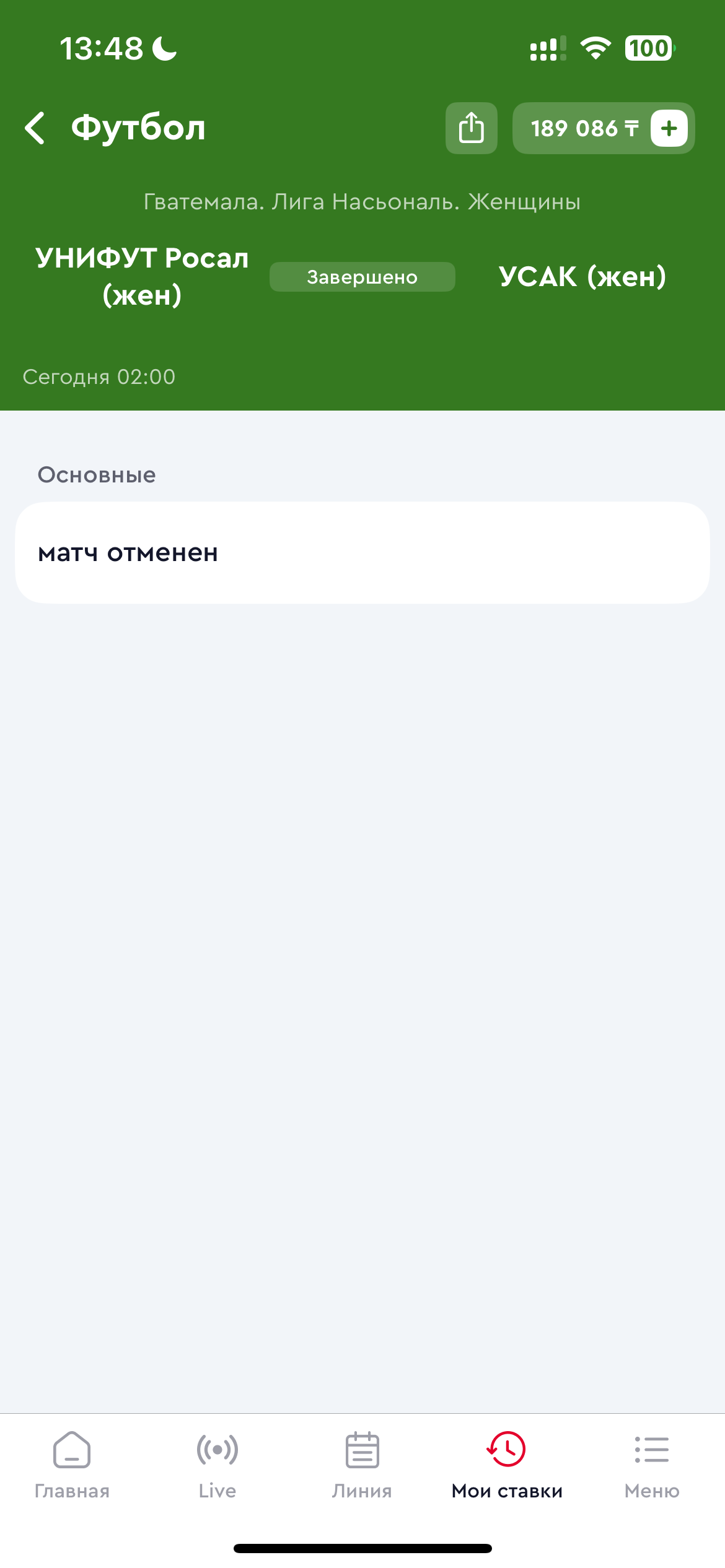 Здравствуйте. года делал ставку, на матч женской лиги Гватемалы по футболу. В лайве увидел и на удачу поставил. Взял исход п1 в 1 тайме. На 38 минуте матча по непонятным причинам матч был прерван, и спустя некоторое время продолжен, наблюдал в других БК где матч появился после возобновления. И так, счет первого тайма был 1-0 уже до прерывания его и первый тайм закончился 1-0. Спустя время, ставку рассчитывают возвратом, а описание делают якобы матч был отменен. Скриншоты есть. Дождался выходных чтобы наконец описать вам всю ситуацию и оставить жалобу. Надеюсь пересмотрят ставку как выигрышную и доначислят средства.
