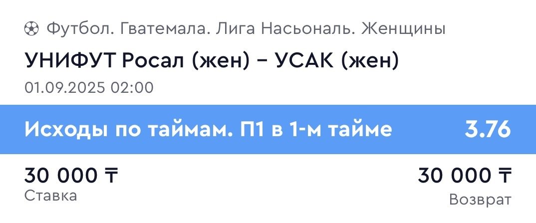 Здравствуйте. В линии была ошибочно указана другая команда. 1 сентября был матч Антигуа - УСАК. А команда УНИФУТ играла за день до этого в гостях с командой Куилко. Возврат ставки в рамках правил.