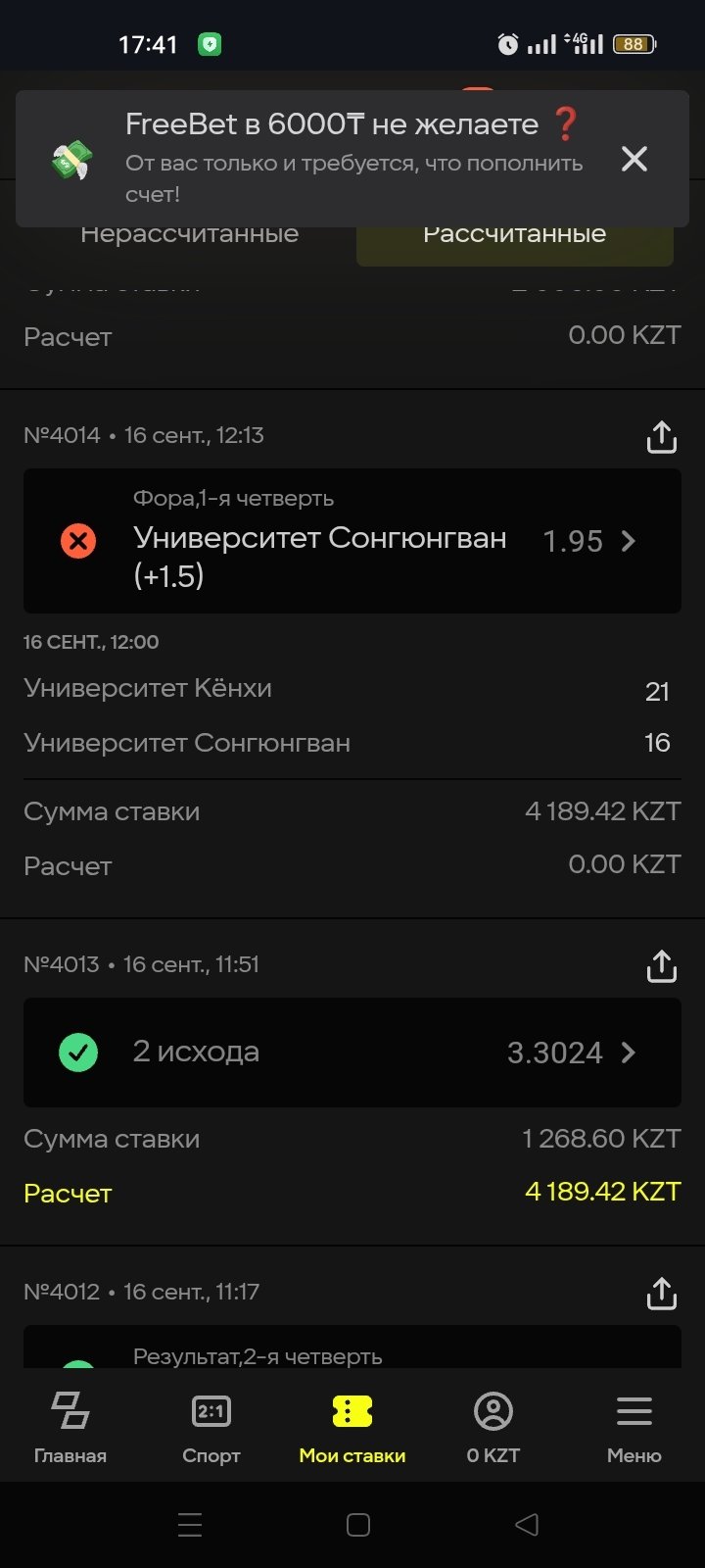 Жалоба №14329327: Некорректно принятое или рассчитанное пари