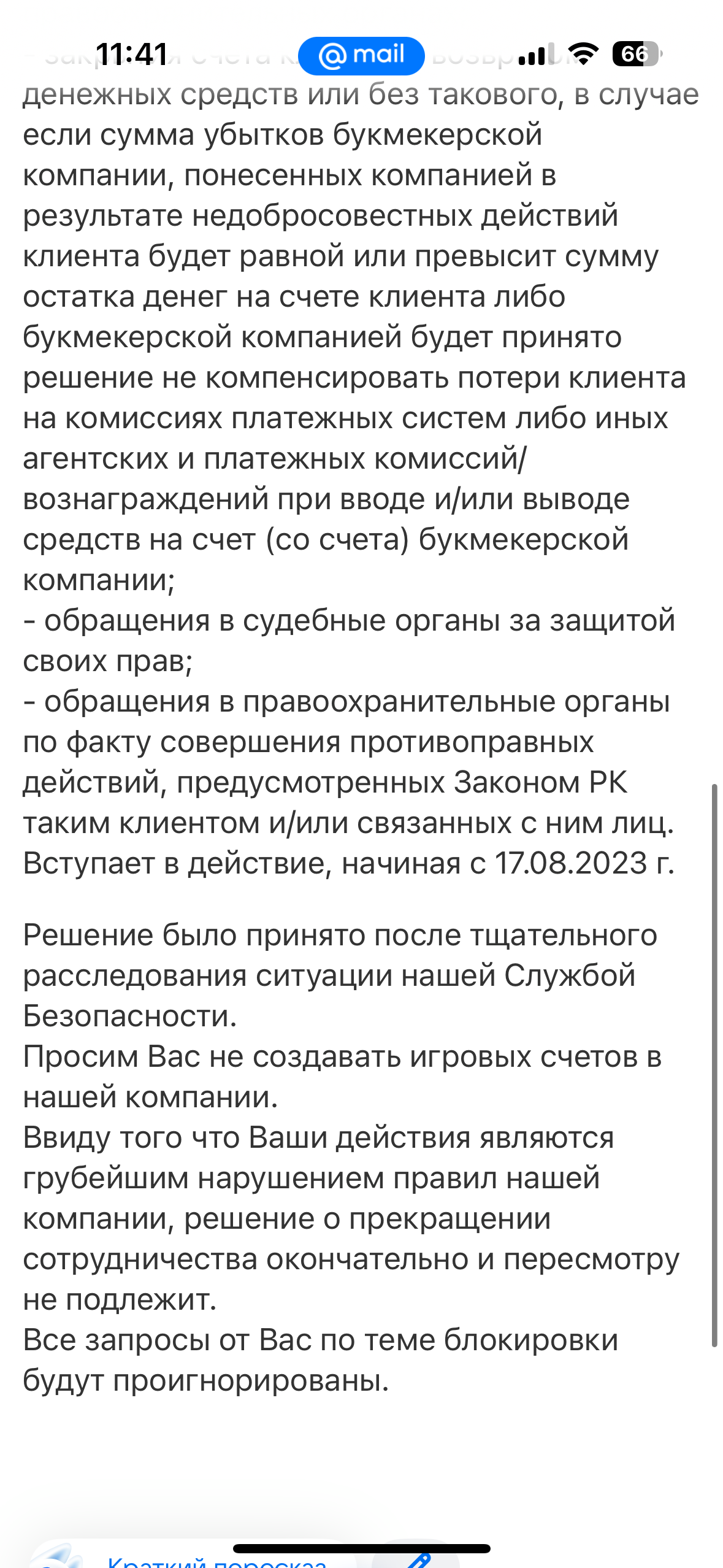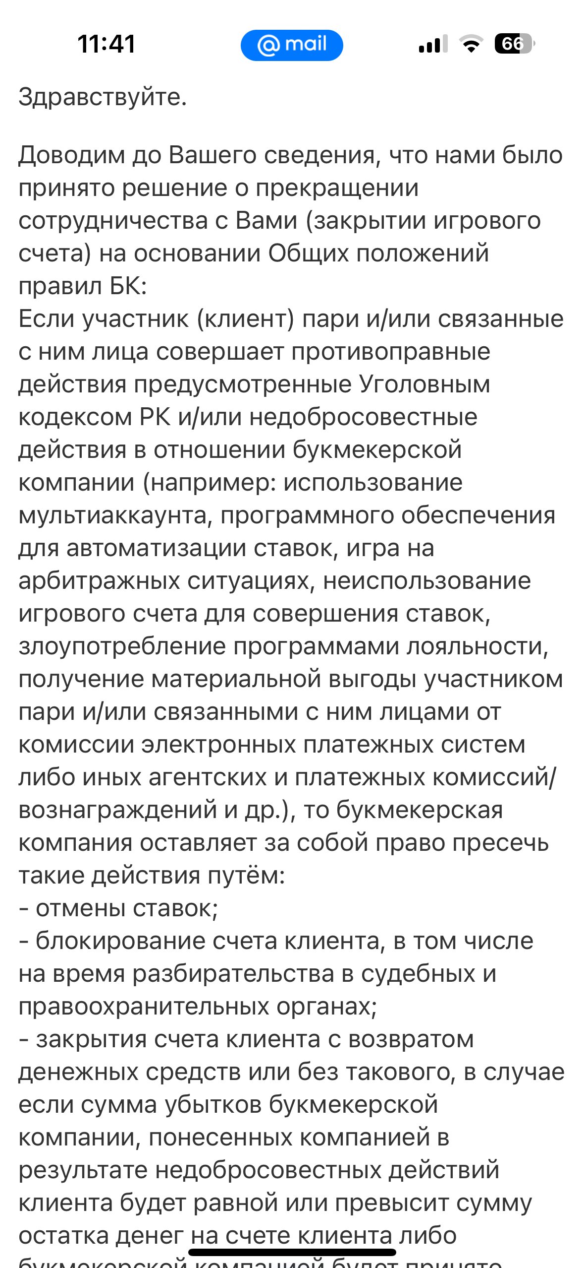 Я не использовала мультиаккаунты, не нарушала правила, не применяла программы для ставок и всегда действовала добросовестно.