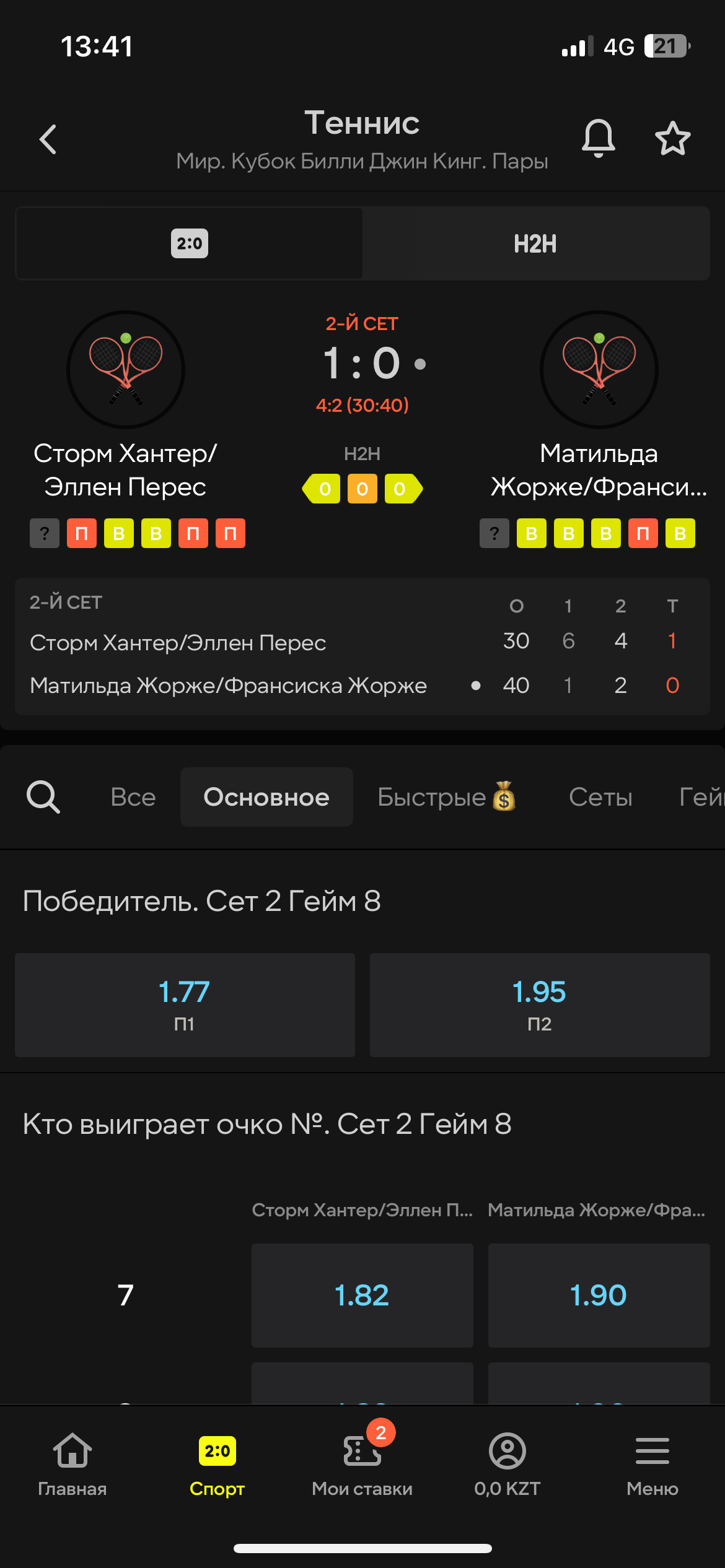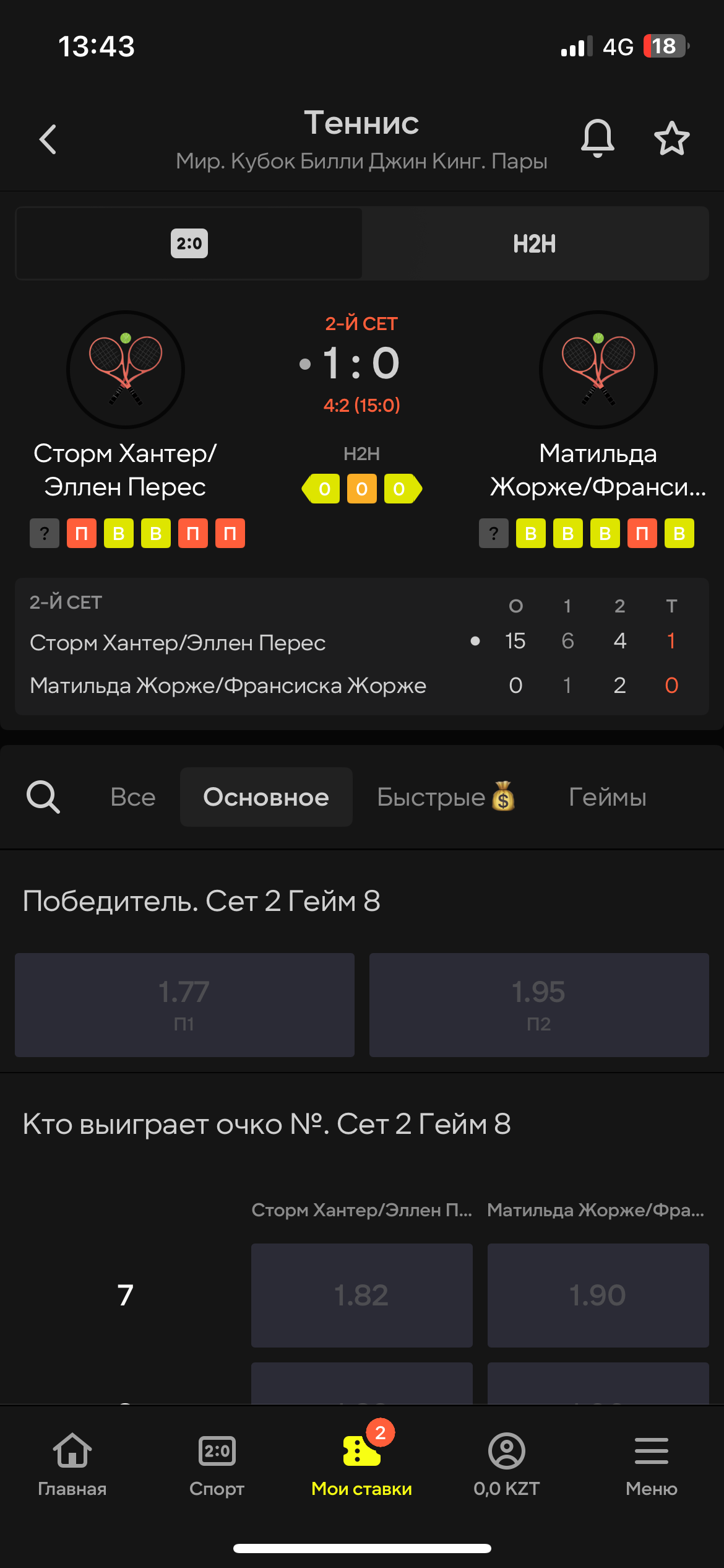 Ставил в лайве на матч по теннису хантер/перес-жорже/жорже (кубок билли джин кинг). В лайве на 8ой собственный гейм первой пары давали . За высокий коэф сразу поставил на них 20000тг. Открываю флэшскор, а там уже 9 гейм идет давно. В париматч все еще принимали на 8гейм. Сразу же написал в поддержку. Также отмечаю что подающего указали неверно, принимали ставку на завершенный гейм. Далее счет в лайве в париматч не менялся до конца матча, по окончанию матча сразу дали итоговый счет. Здесь куча нарушении. Должны сделать вовзрат, но дали проигрышь. Я понимаю что счет может зависать, где то подача может быть неверное указана если это низкорейтинговый матч. Но это международный кубок, подача указана неверно, гейм уже сыгран а они принимают ставку на него и указывают старый счет с неправильными подающими. Да и такого счета 4-2 30-40 при приеме ставки, не было в матче такого счета в целом. Полное комбо. Прошу помочь