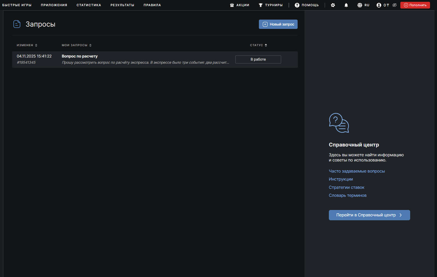 Жалоба №14330159: Некорректно принятое или рассчитанное пари