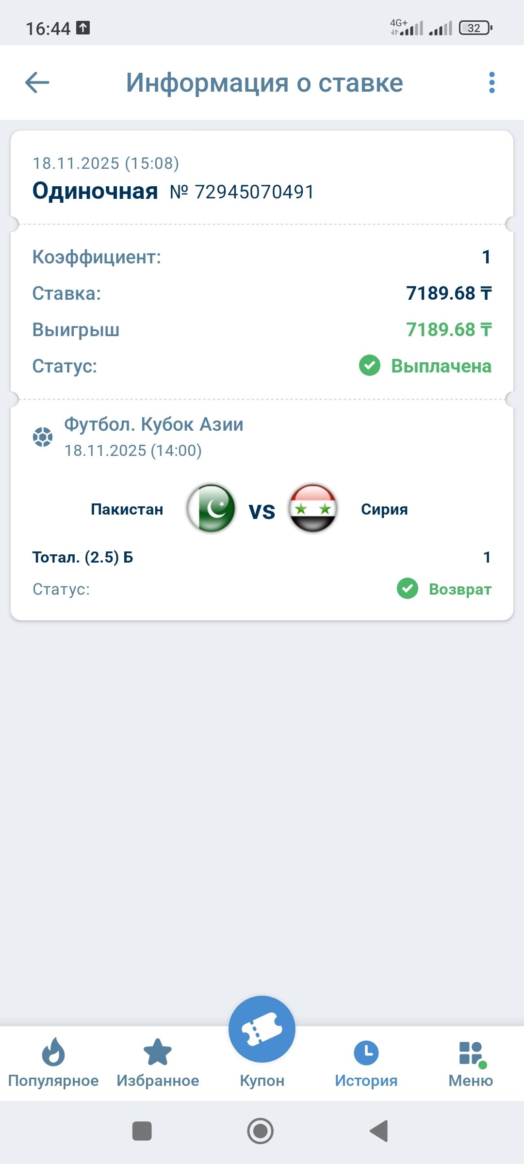 Жалоба №14330197: Некорректно принятое или рассчитанное пари