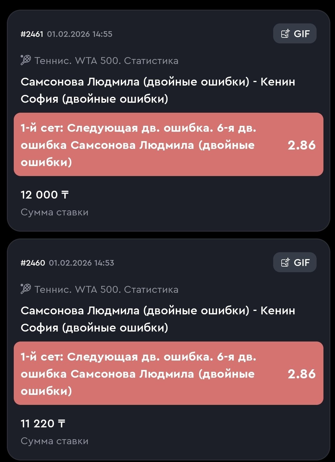 Ставка поставлена на двойные ошибки 6ая двойная от самсоновой при счете по двойным 4-1, самсонова сделала 6 двойную но они ее не засчитывают. Сделал видео всех двойных ошибок могу скинуть