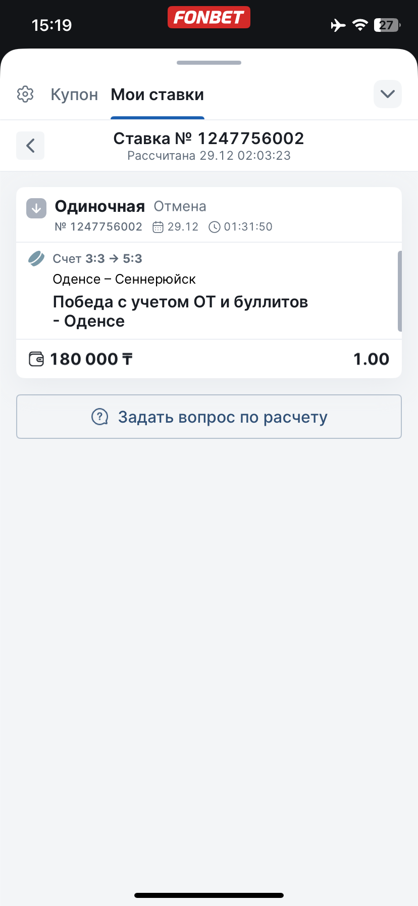 Жалоба №14331326: Некорректно принятое или рассчитанное пари