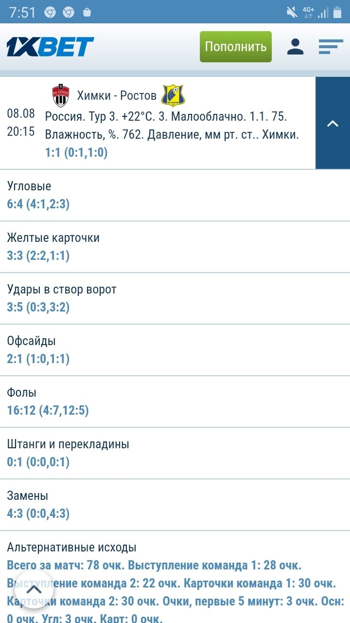 Поставил ставку на матч РПЛ Химки-Ростов от на то, что тотал ударов в створ у Ростова в первом тайме больше 2,5. Сам смотрел матч поминутно и пофамильно: Комличенко 14 минута гол, Норманн 28 и третий удар Хашимото на 30 минуте. БК олимпбет насчитывает как проигрыш ссылаясь на Тинькофф РПЛ. Ответ от олимпбета что ставка верно рассчитана, как можно её верно рассчитать, если в живую было три удара, просил их пересмотреть первый тайм матча, они ссылаются на официальный сайт Тинькофф РПЛ, который изначально неверно указал статистику ударов. Тинькофф РПЛ обновил информацию. Также есть скрин с матча тв. Прошу вас посодействовать в решении данного вопроса. Так как БК олимпбет ссылается на ошибочную статистику, а не на сам матч, в котором были эти три удара.