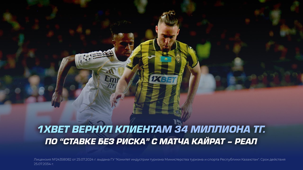 1XBET вернул клиентам 34 миллиона тенге по «Ставке без риска» с матча Кайрат — Реал