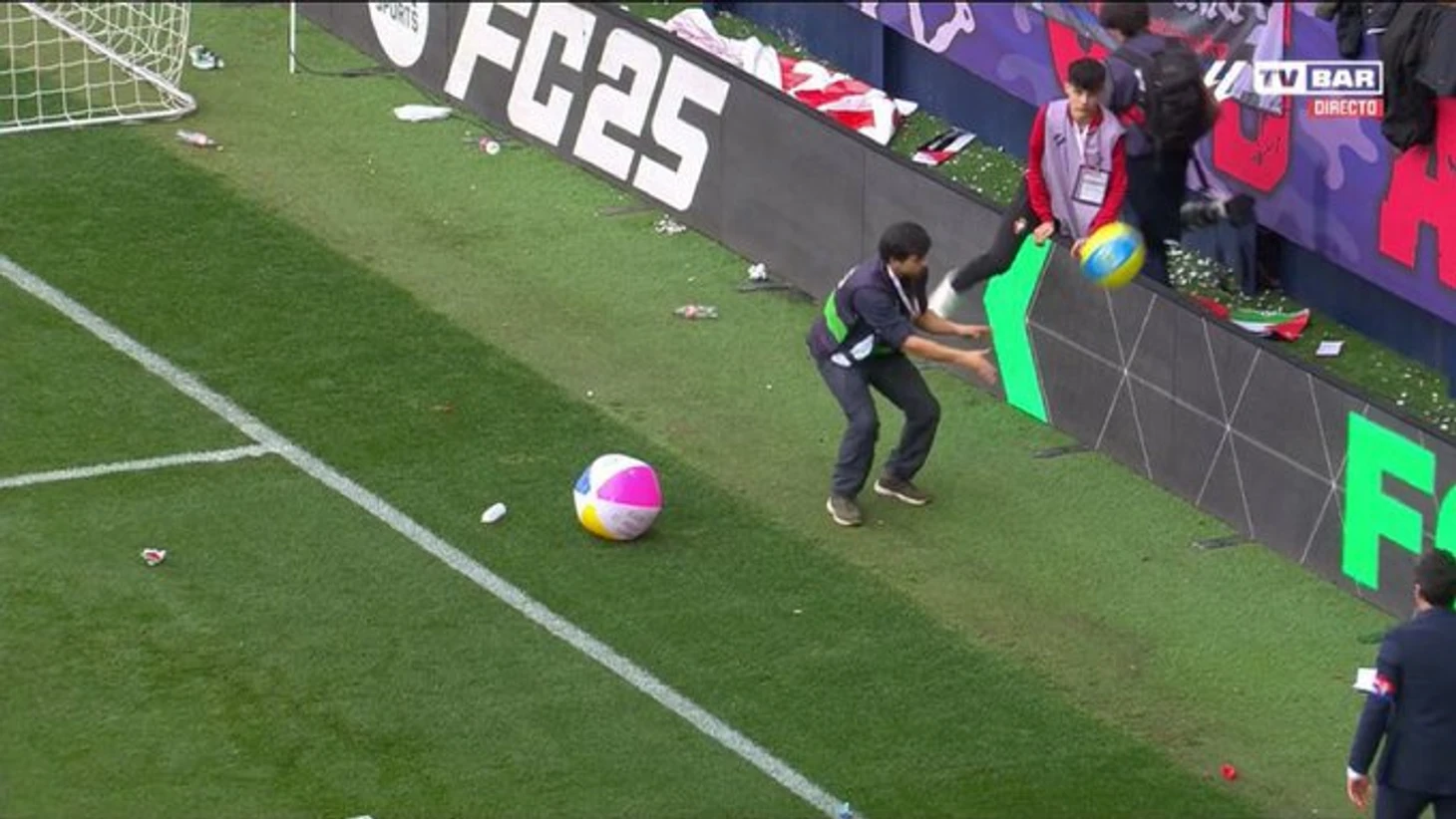 Фанаты «Осасуны» пели «Пляжный мяч Винисиусу» и бросали на поле пляжные мячи.