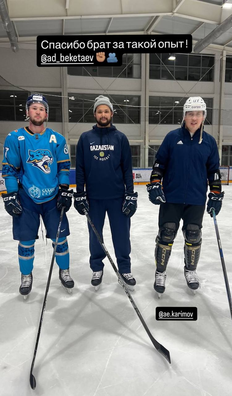 Нападающий «Астаны» и сборной Казахстана по футболу Рамазан Каримов сыграл в хоккей со своим другом защитником «Барыса» и национальной команды Казахстана Адилем Бекетаевым.