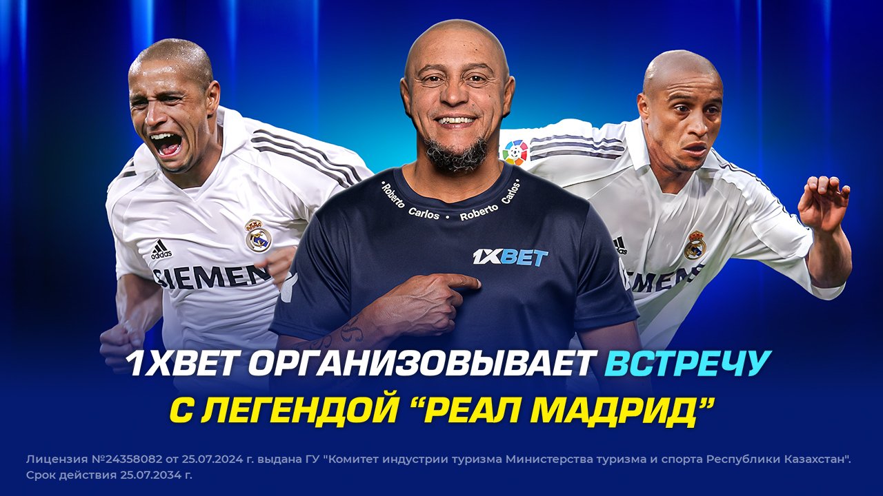 1XBET / Генеральный партнер ФК “Кайрат” планирует порадовать всех болельщиков мадридского “Реала”. Именно ты можешь стать тем счастливчиком, кто встретиться лично с легендарным Роберто Карлосом. Амбассадор компании 1XBET посетит Алматы в составе делегации испанского гранда, а между делом уделит время казахстанским болельщикам.