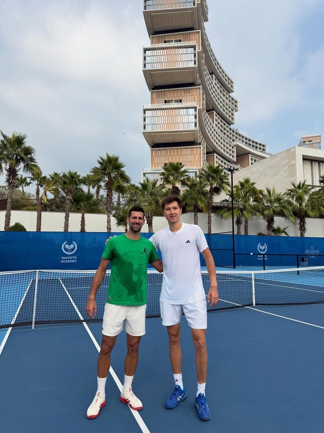 Казахстанский теннисист Бейбит Жукаев потренировался с 24-кратным победителем турниров «Большого шлема» сербом Новаком Джоковичем. Об этом Жукаев рассказал на своей странице в соцсети.