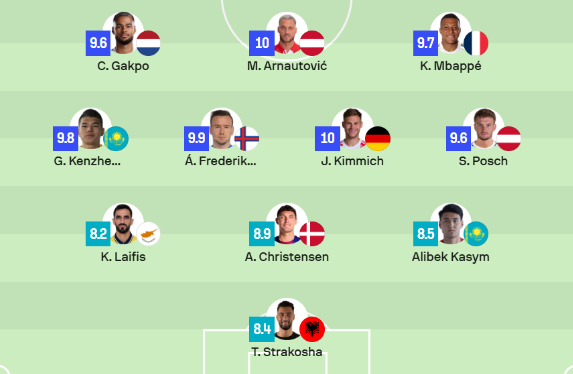 - Положение в группе J: 1. Северная Македония (11 очков), 2. Бельгия (10), 3. Уэльс (10), 4. Казахстан (6), Лихтенштейн (0).
