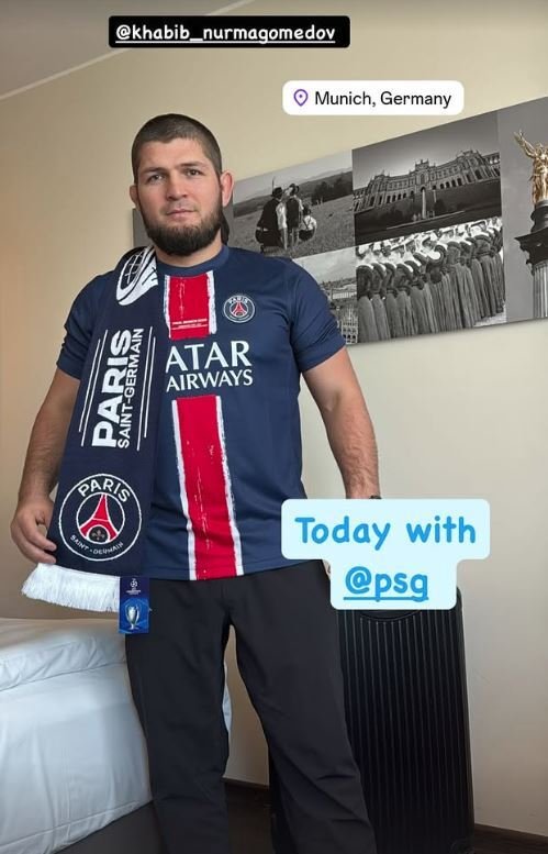 Нурмагомедов на своей странице в соцсети опубликовал фото с шарфом и футболкой парижского клуба.