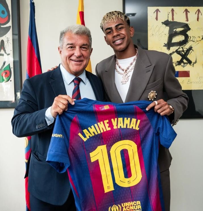 Футболист взял номер, который ранее принадлежит другому вингеру Ансу Фати. Ранее Ямаль выступал за «сине‑гранатовых» под 19‑м номером.